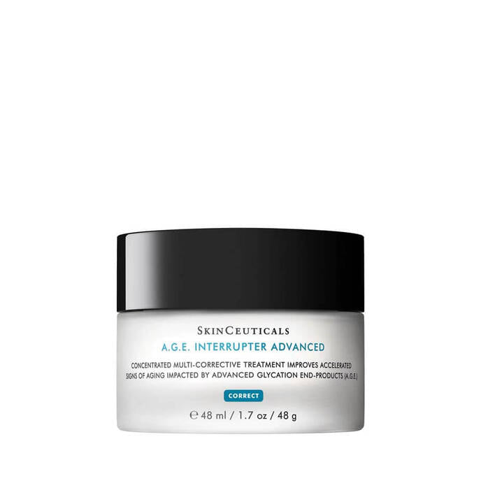 A.G.E. Interrupter Advanced is a potent corrective cream that helps reverse visible signs of ageing impacted by collagen decline and glycation, including wrinkling, laxity, and dullness.